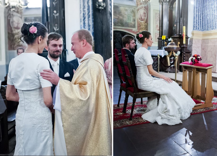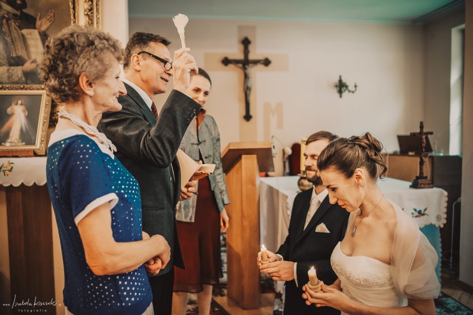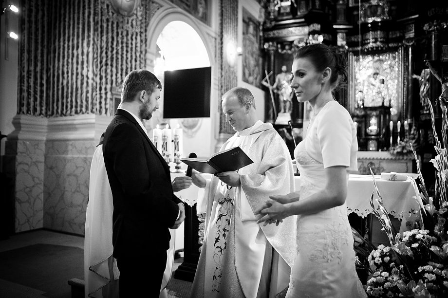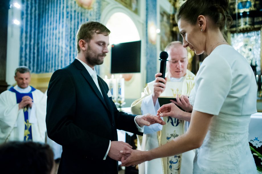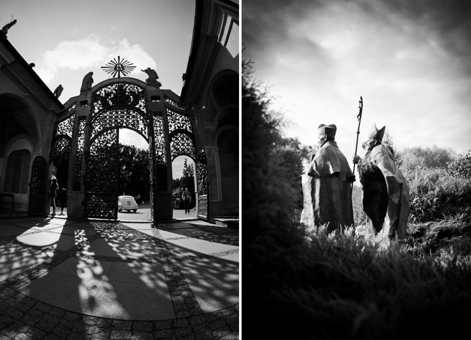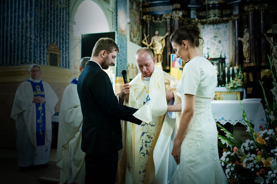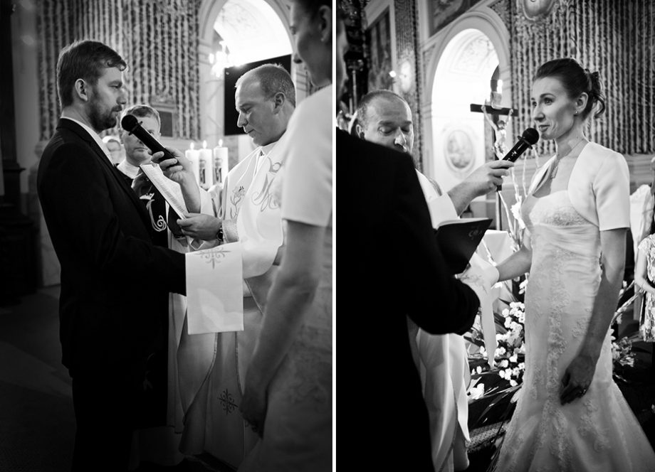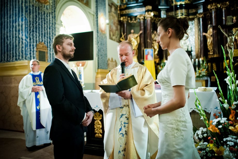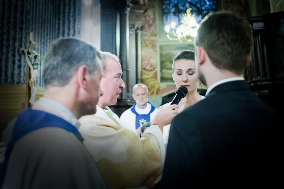 Ślub odbył się w Sanktuarium Maryjnym w Świętej Lipce na Mazurach. Piękne miejsce. Tuż przed ślubem udało się zrobić półgodzinną sesję w krużgankach świątyni. Ponieważ Kasia i Marek są muzykami nie zabrakło pięknych śpiewów i wyjątkowej oprawy muzycznej w trakcie ceremonii. Psalm był śpiewany przez samą pannę młodą i jej świadkową. Cudnie.