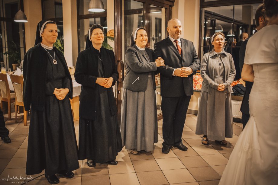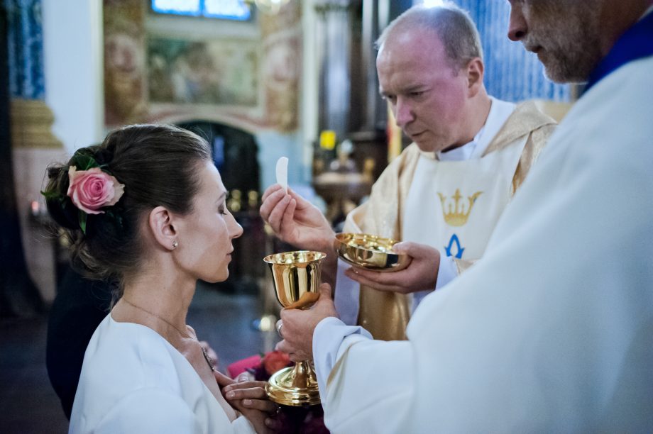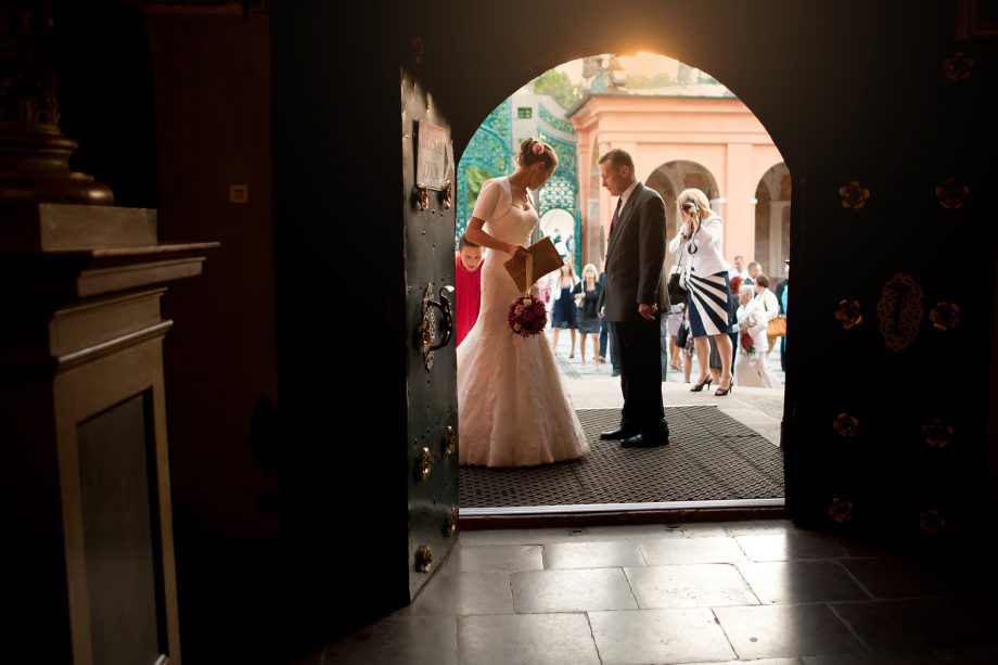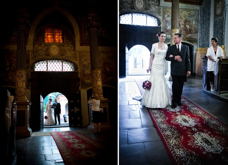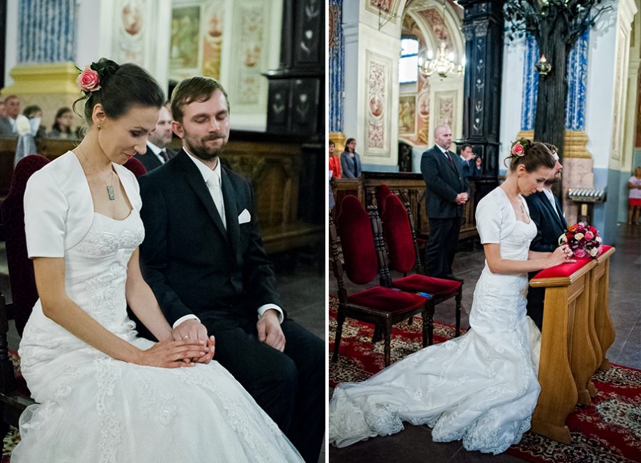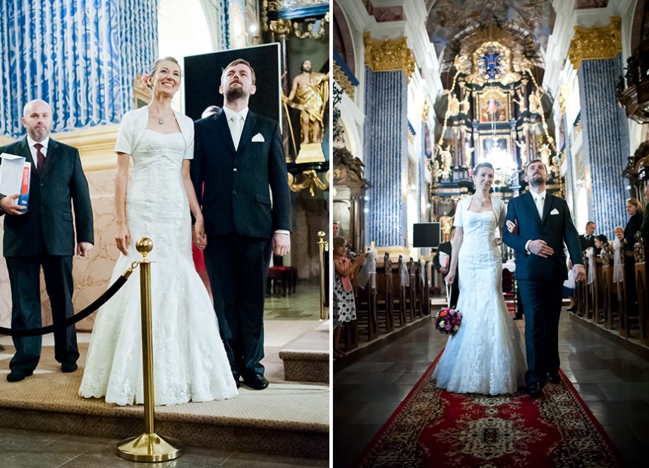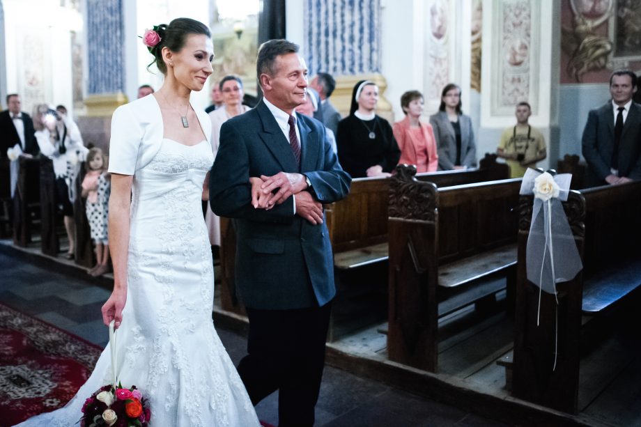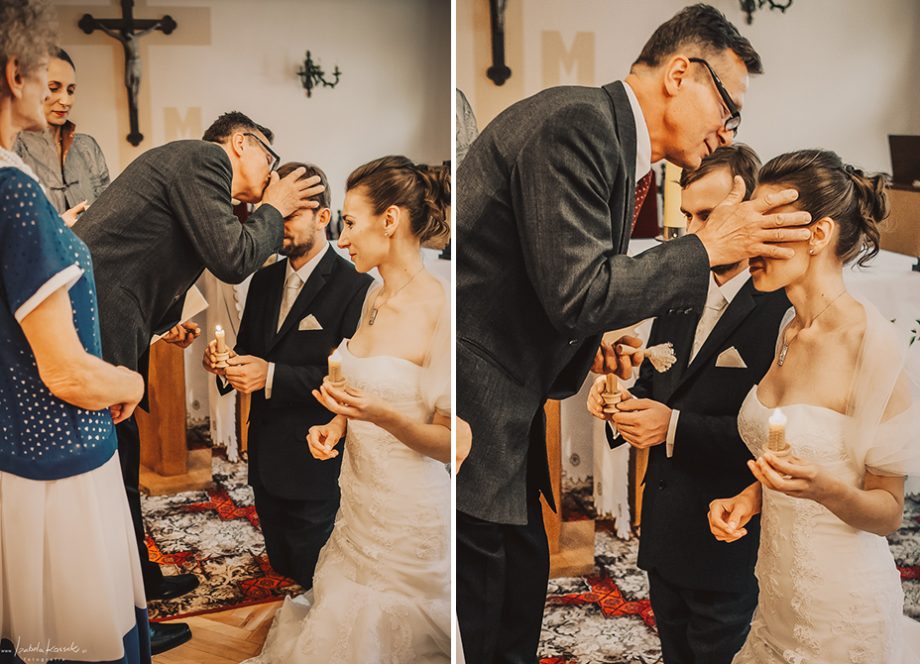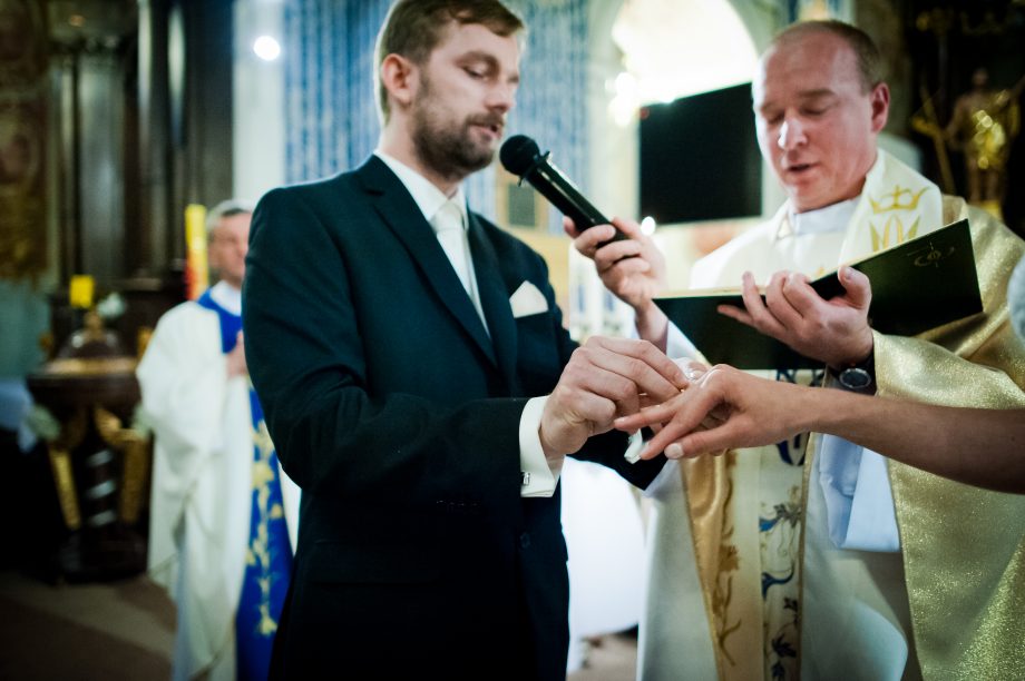 Ślub odbył się w Sanktuarium Maryjnym w Świętej Lipce na Mazurach. Piękne miejsce. Tuż przed ślubem udało się zrobić półgodzinną sesję w krużgankach świątyni. Ponieważ Kasia i Marek są muzykami nie zabrakło pięknych śpiewów i wyjątkowej oprawy muzycznej w trakcie ceremonii. Psalm był śpiewany przez samą pannę młodą i jej świadkową. Cudnie.